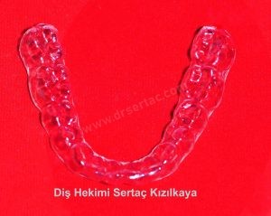 Şeffaf plak ile ortodonti tedavisinde kullanılan ince şeffaf plaklar.